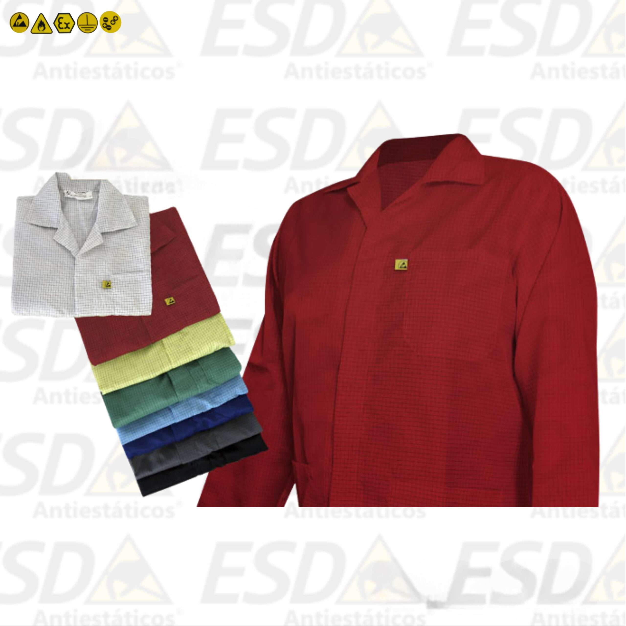 O jaleco ESD é de poliéster dissipativo. Utilizado para evitar a geração de carga eletrostáticas pelo usuário, em ambientes onde há manuseio de objetivos que sejam sensível a energia estática.