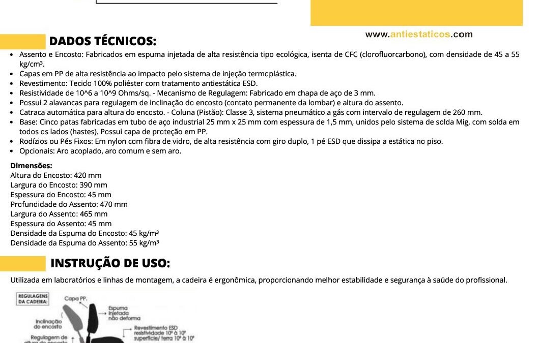 Ficha técnicaCADEIRA ESD INDL STYLUS ENCOSTO MEDIO COM RODÍZIO