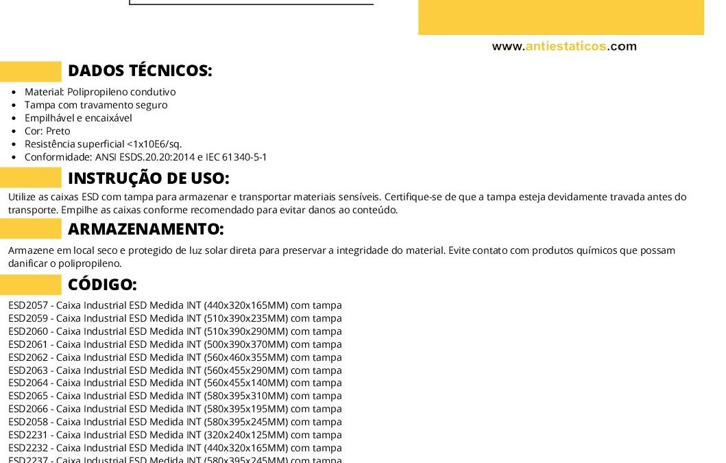 Ficha Técnica CAIXA INDUSTRIAL ESD COM TAMPA (2) por ESD Antiestáticos | jun 10, 2025 | 0 ComentáriosEnviar Comentário Cancelar respostaO seu endereço de e-mail não será publicado. Campos obrigatórios são marcados com *Comentário *Nome * E-mail * Site Salvar meus dados neste navegador para a próxima vez que eu comentar. Δ