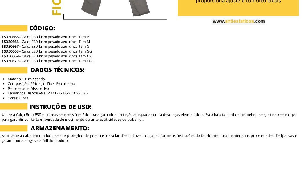 Ficha técnica CALÇA ESD BRIM PESADO CINZA ESD (1) por ESD Antiestáticos | ago 7, 2025 | 0 ComentáriosEnviar Comentário Cancelar respostaO seu endereço de e-mail não será publicado. Campos obrigatórios são marcados com *Comentário *Nome * E-mail * Site Salvar meus dados neste navegador para a próxima vez que eu comentar. Δ