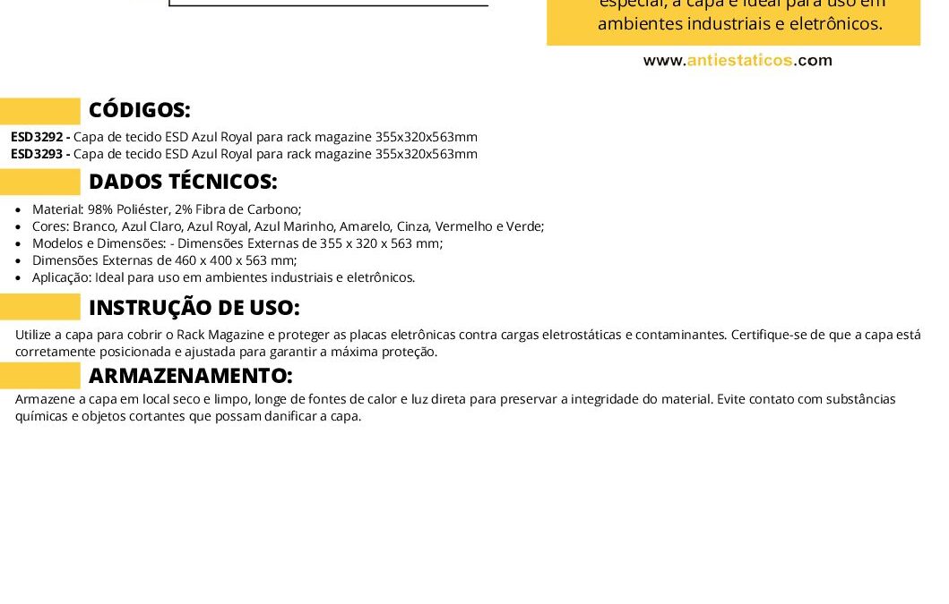 Ficha técnica CAPA ESD PARA RACK MAGAZINE