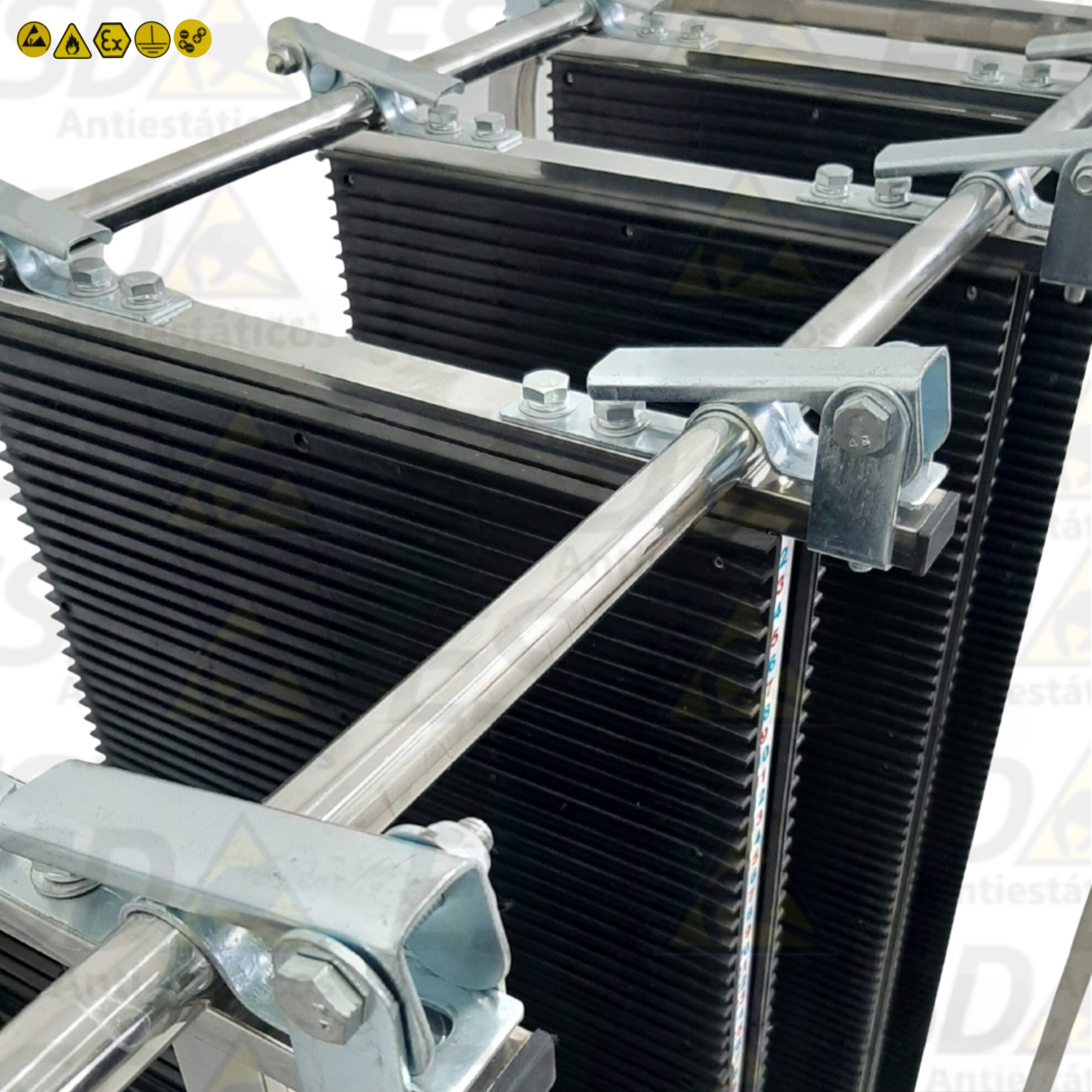 O rack magazine ESD é condutivo permanente. Utilizado para facilitar o manuseio e o controle do fluxo de placas eletrônicas dentro e fora da área do processo industrial. Oferece suporte e organização de até 300 placas.
