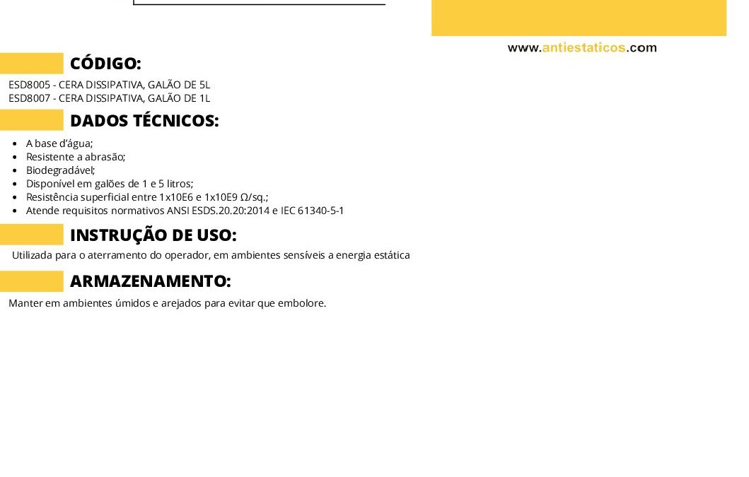 Ficha técnica Cera ESD Antiestática por ESD Antiestáticos | maio 21, 2025 | 0 ComentáriosEnviar Comentário Cancelar respostaO seu endereço de e-mail não será publicado. Campos obrigatórios são marcados com *Comentário *Nome * E-mail * Site Salvar meus dados neste navegador para a próxima vez que eu comentar. Δ