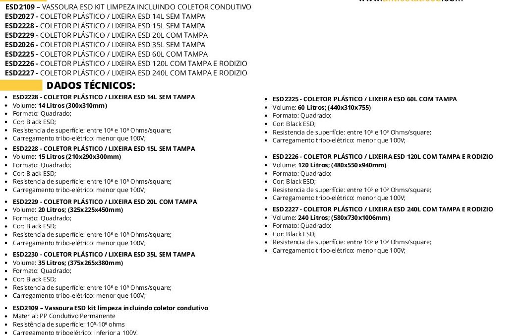 Ficha técnica Coletor Plástico Lixeira ESD + Vassoura com coletor ESD por ESD Antiestáticos | nov 26, 2025 | 0 ComentáriosEnviar Comentário Cancelar respostaO seu endereço de e-mail não será publicado. Campos obrigatórios são marcados com *Comentário *Nome * E-mail * Site Salvar meus dados neste navegador para a próxima vez que eu comentar. Δ