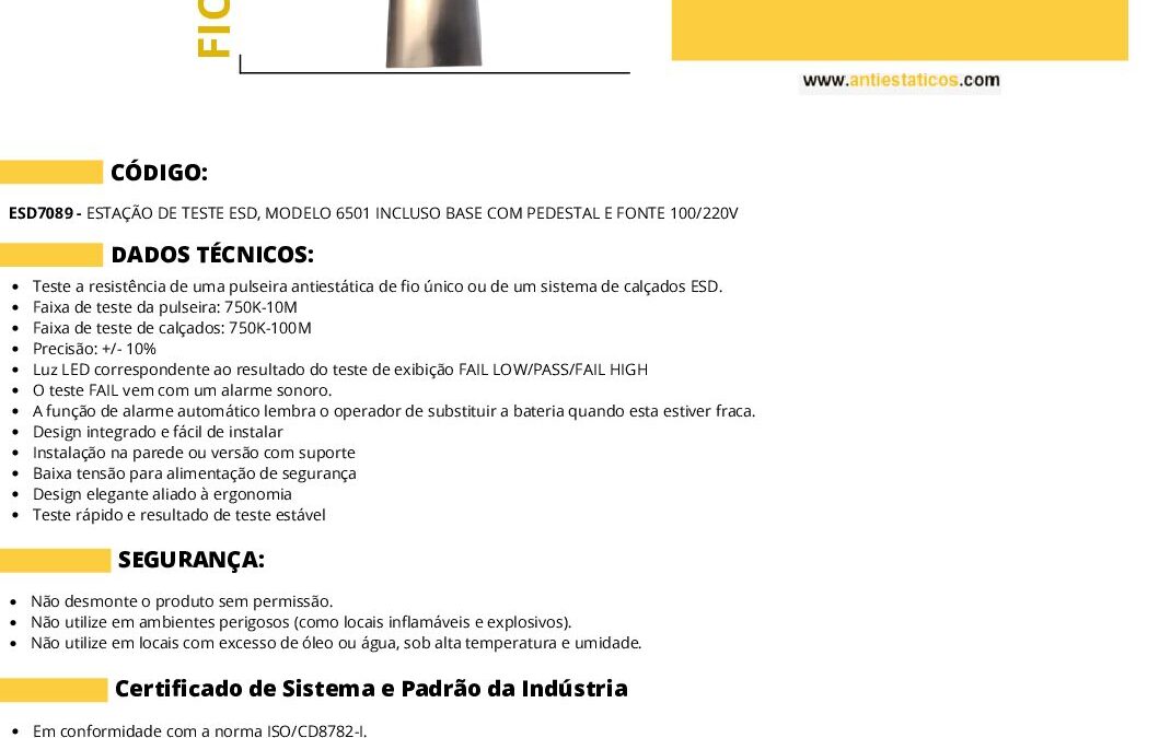 Ficha técnica ESTAÇÃO DE TESTE ESD, MODELO 6501 INCLUSO BASE COM PEDESTAL E FONTE 100220V por ESD Antiestáticos | nov 24, 2025 | 0 ComentáriosEnviar Comentário Cancelar respostaO seu endereço de e-mail não será publicado. Campos obrigatórios são marcados com *Comentário *Nome * E-mail * Site Salvar meus dados neste navegador para a próxima vez que eu comentar. Δ