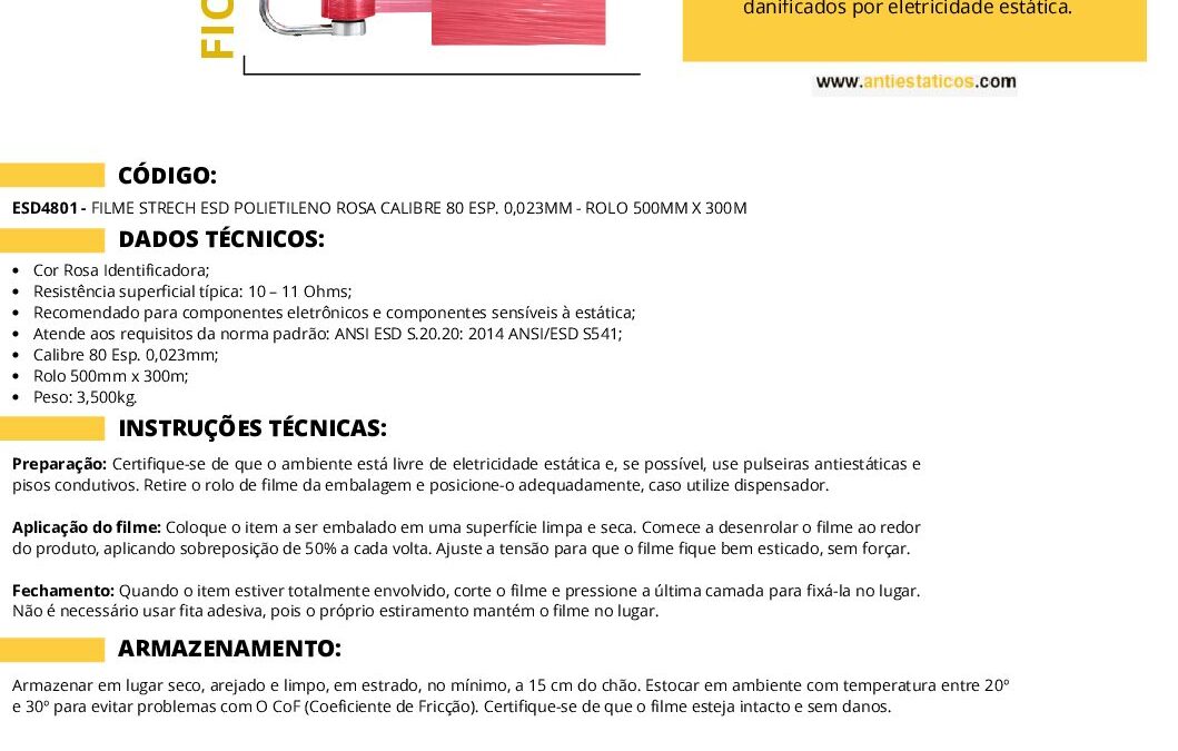 Ficha técnica FILME STRECH ESD POLIETILENO ROSA. por ESD Antiestáticos | jul 22, 2025 | 0 ComentáriosEnviar Comentário Cancelar respostaO seu endereço de e-mail não será publicado. Campos obrigatórios são marcados com *Comentário *Nome * E-mail * Site Salvar meus dados neste navegador para a próxima vez que eu comentar. Δ