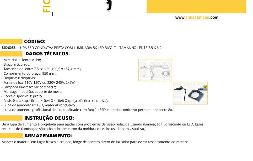 Ficha técnica LUPA COM LUMINÁRIA