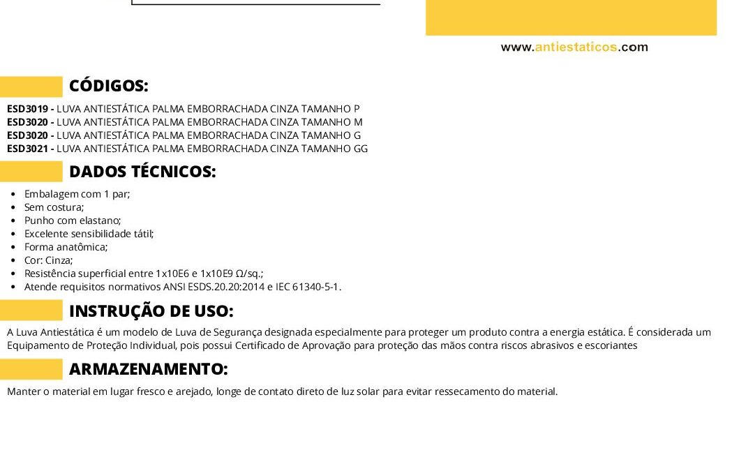 Ficha Técnica LUVA ESD por ESD Antiestáticos | maio 27, 2025 | 0 ComentáriosEnviar Comentário Cancelar respostaO seu endereço de e-mail não será publicado. Campos obrigatórios são marcados com *Comentário *Nome * E-mail * Site Salvar meus dados neste navegador para a próxima vez que eu comentar. Δ