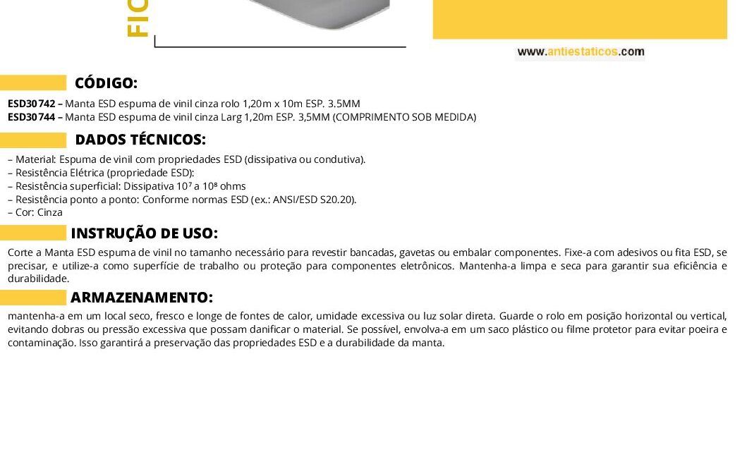 Ficha técnica Manta ESD espuma de vinil cinza por ESD Antiestáticos | jul 16, 2025 | 0 ComentáriosEnviar Comentário Cancelar respostaO seu endereço de e-mail não será publicado. Campos obrigatórios são marcados com *Comentário *Nome * E-mail * Site Salvar meus dados neste navegador para a próxima vez que eu comentar. Δ