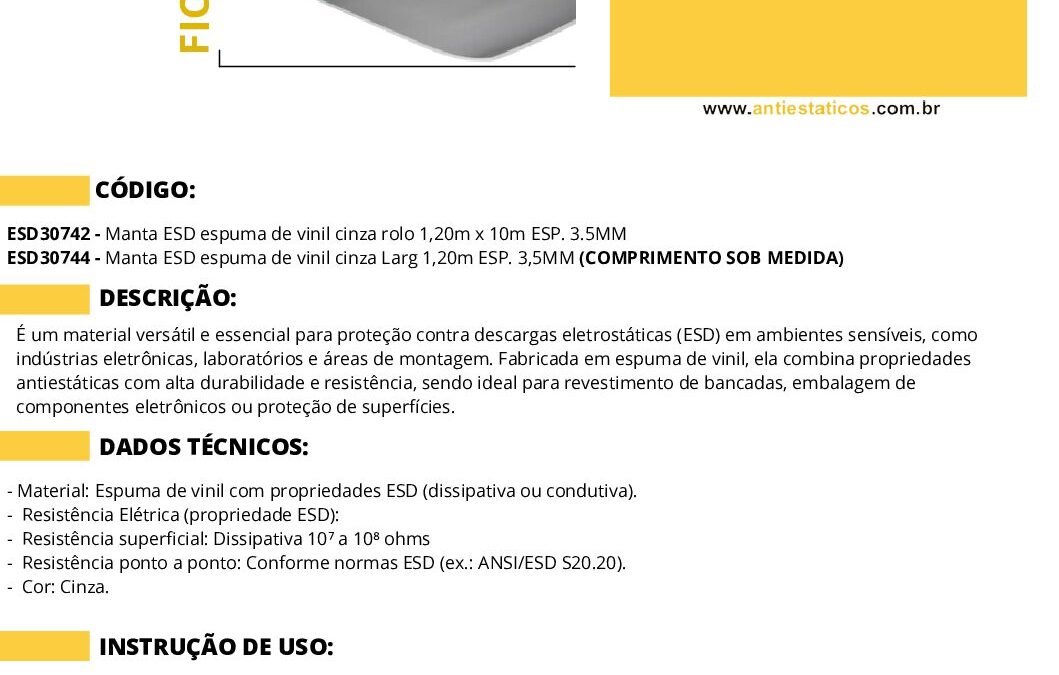 Ficha técnica Manta ESD espuma de vinil cinza PDF por ESD Antiestáticos | fev 10, 2025 | 0 ComentáriosEnviar Comentário Cancelar respostaO seu endereço de e-mail não será publicado. Campos obrigatórios são marcados com *Comentário *Nome * E-mail * Site Salvar meus dados neste navegador para a próxima vez que eu comentar. Δ