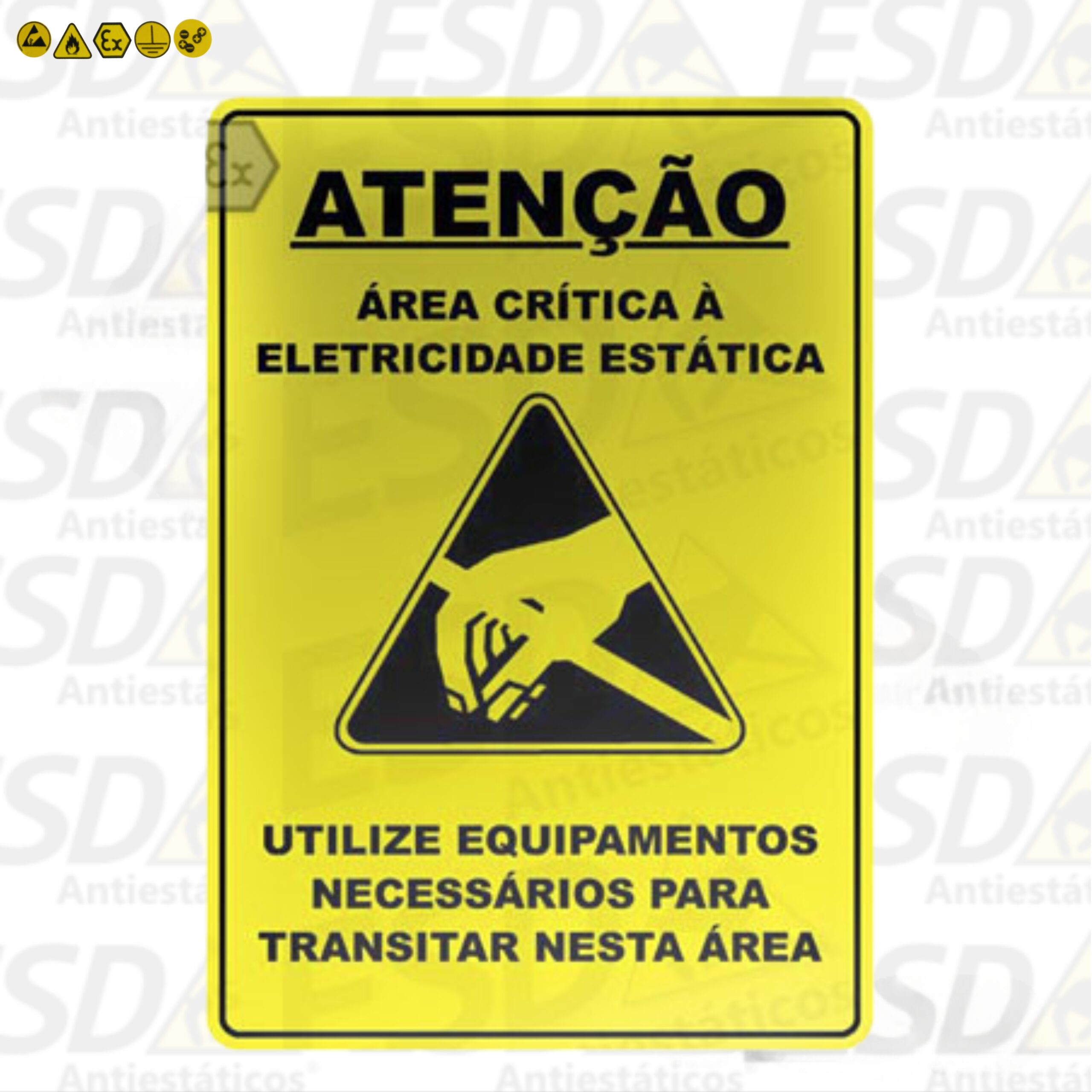 Utilizada nas indústrias e laboratórios para advertir quanto ao uso de equipamentos necessários na área crítica à eletricidade estática.