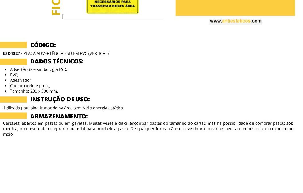 Ficha técnica PLACA DE SINALIZAÇÃO PVC VERTICAL por ESD Antiestáticos | jul 22, 2025 | 0 ComentáriosEnviar Comentário Cancelar respostaO seu endereço de e-mail não será publicado. Campos obrigatórios são marcados com *Comentário *Nome * E-mail * Site Salvar meus dados neste navegador para a próxima vez que eu comentar. Δ
