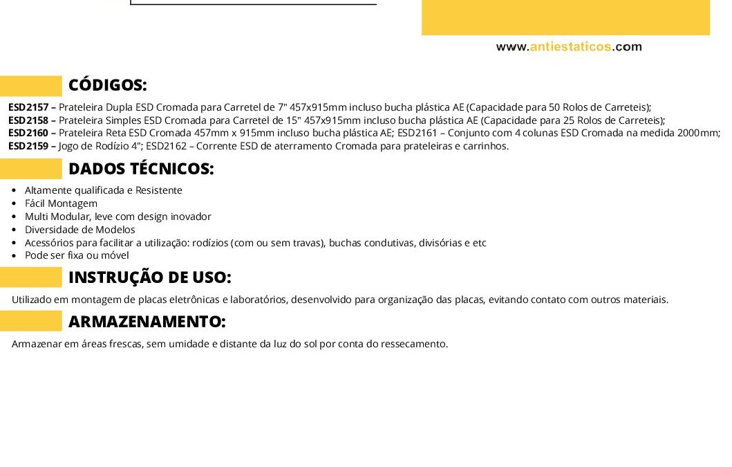 Ficha técnicaPrateleira ESD Cromada para Carretel SMD por ESD Antiestáticos | maio 19, 2025 | 0 ComentáriosEnviar Comentário Cancelar respostaO seu endereço de e-mail não será publicado. Campos obrigatórios são marcados com *Comentário *Nome * E-mail * Site Salvar meus dados neste navegador para a próxima vez que eu comentar. Δ