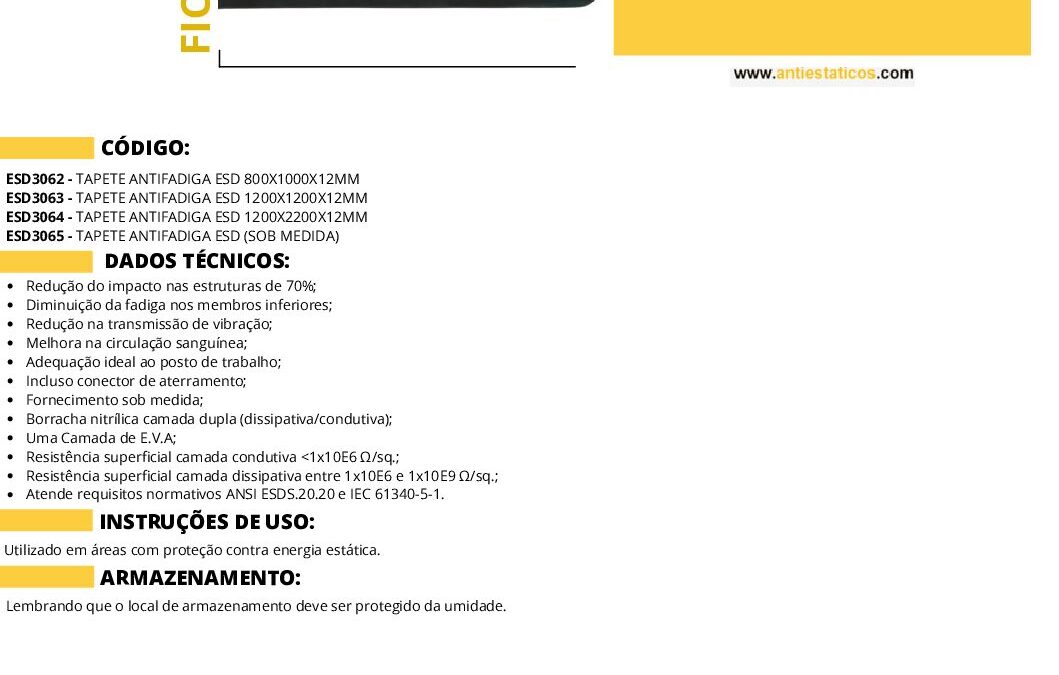 Ficha técnica TAPETE ANTIFADIGA ESD. por ESD Antiestáticos | ago 26, 2025 | 0 ComentáriosEnviar Comentário Cancelar respostaO seu endereço de e-mail não será publicado. Campos obrigatórios são marcados com *Comentário *Nome * E-mail * Site Salvar meus dados neste navegador para a próxima vez que eu comentar. Δ