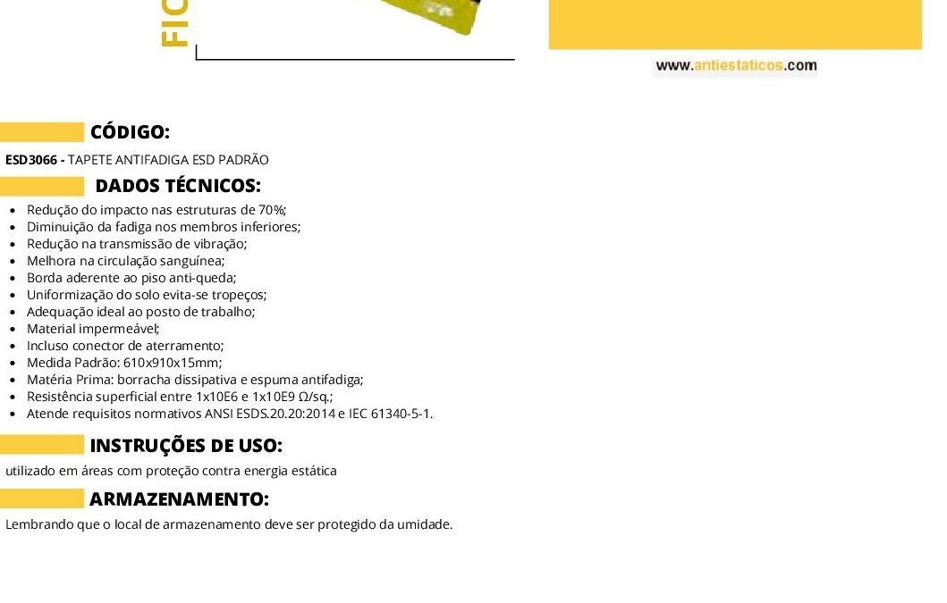 Ficha técnica TAPETE ANTIFADIGA ESD