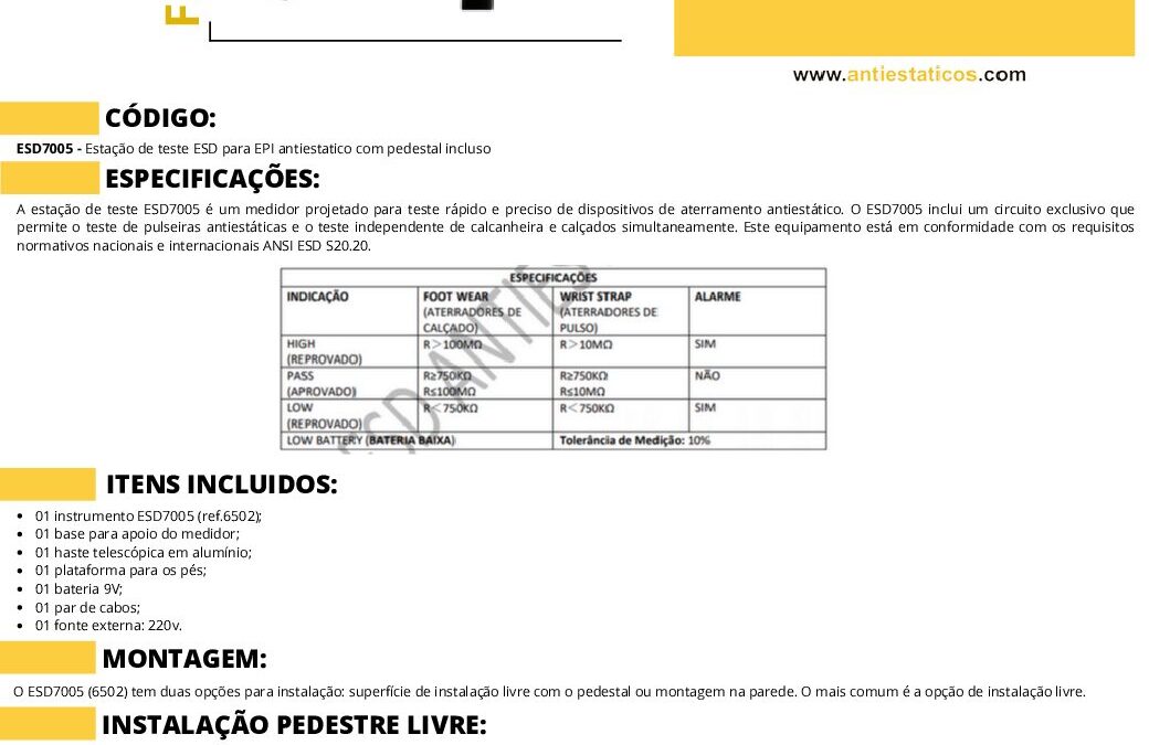 Ficha técnica Estação de teste ESD para EPI antiestatico com pedestal incluso por ESD Antiestáticos | set 9, 2025 | 0 ComentáriosEnviar Comentário Cancelar respostaO seu endereço de e-mail não será publicado. Campos obrigatórios são marcados com *Comentário *Nome * E-mail * Site Salvar meus dados neste navegador para a próxima vez que eu comentar. Δ