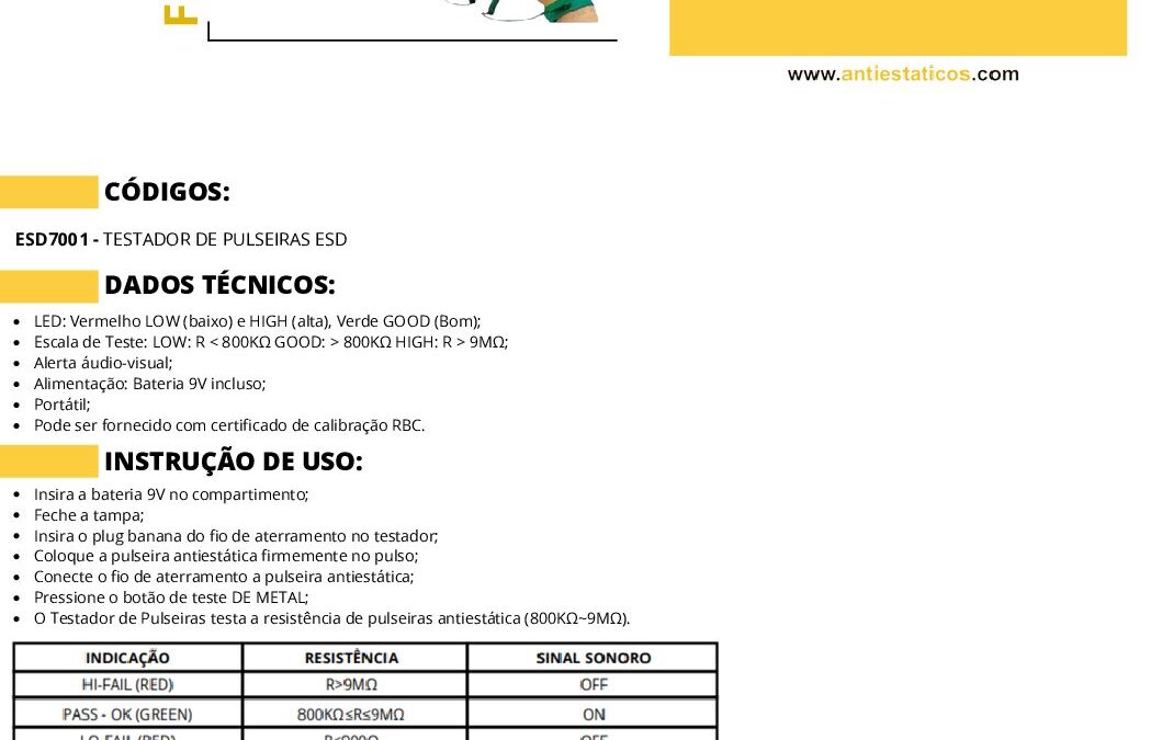 Ficha técnica TESTADOR DE PULSEIRA por ESD Antiestáticos | set 11, 2025 | 0 ComentáriosEnviar Comentário Cancelar respostaO seu endereço de e-mail não será publicado. Campos obrigatórios são marcados com *Comentário *Nome * E-mail * Site Salvar meus dados neste navegador para a próxima vez que eu comentar. Δ